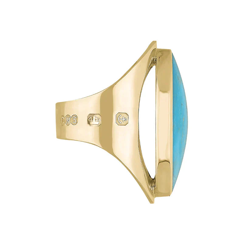 9ct Yellow Gold Turquoise Hallmark Large Oval Ring. R013_FH.