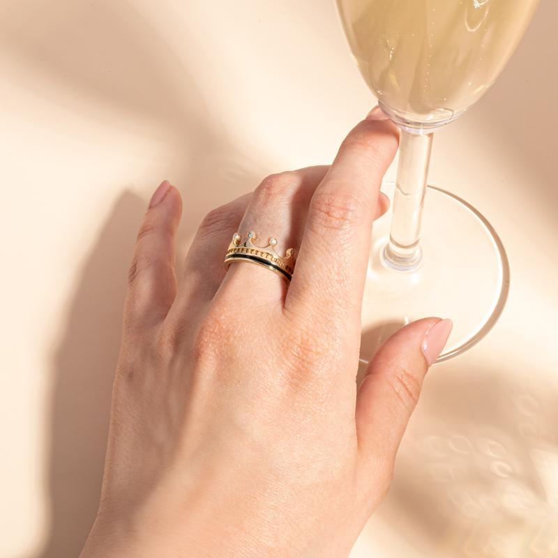 9ct Yellow Gold Whitby Jet Diamond Tiara Patterned Band Ring