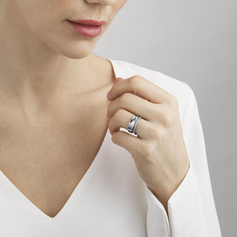 This powerful sterling silver ring is part of the Georg Jenson Marcia range. Marcia - Named after Vivianna Torun Bülow-Hübe’s daughter, the Vivianna Marcia collection is inspired by Vivianna Torun Bülow-Hübe’s own love ring –a strong symbol of love and companionship.