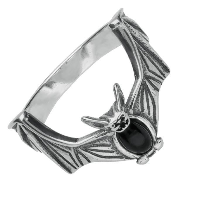 Sterling Silver Whitby Jet Oval Belly Bat Ring