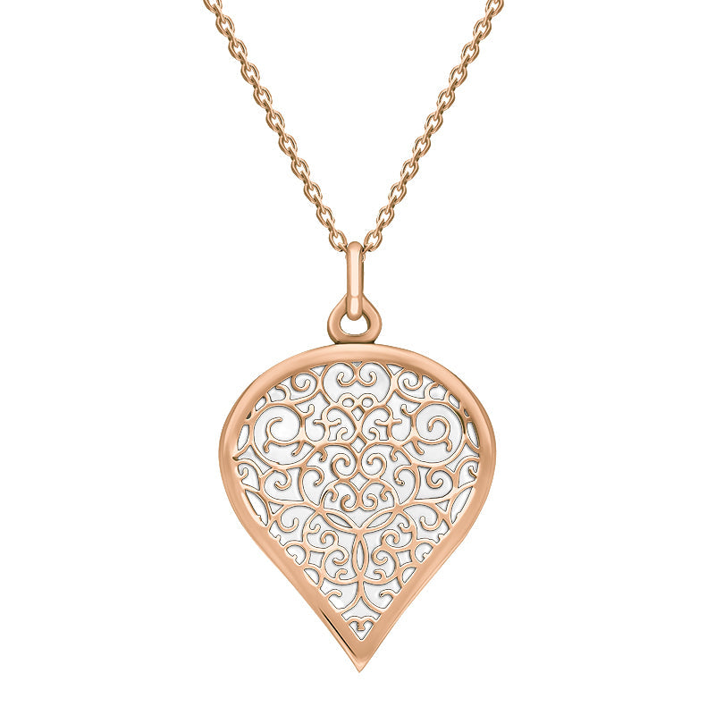 18ct Rose Gold Bauxite Flore Filigree Large Heart Necklace. P3631.