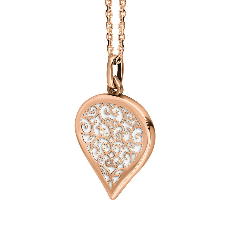 18ct Rose Gold Bauxite Flore Filigree Medium Heart Necklace. P3630.