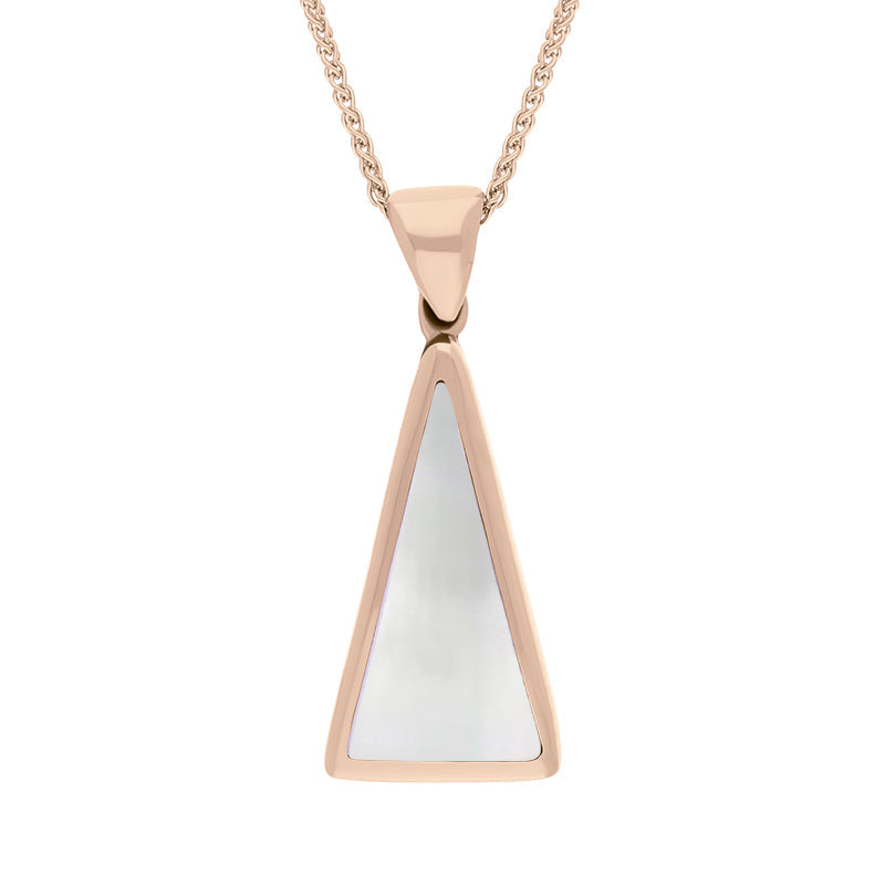 18ct Rose Gold Blue John Mother Of Pearl Small Double Sided Triangular Fob Necklace