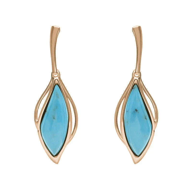 18ct Rose Gold Turquoise Open Marquise Drop Earrings, E2437