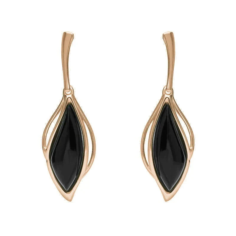 18ct Rose Gold Whitby Jet Open Marquise Drop Earrings, E2437