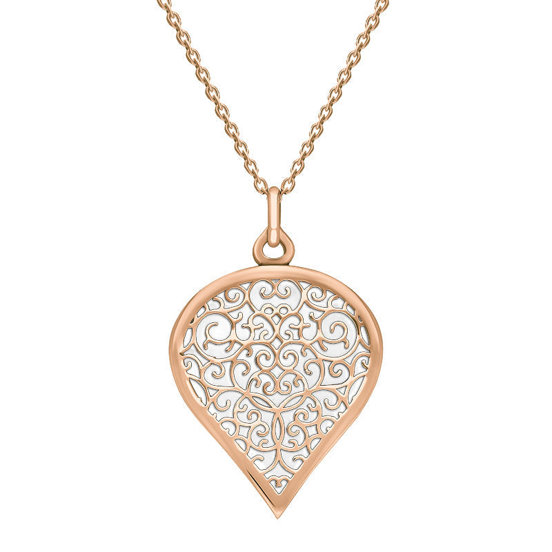 9ct Rose Gold Bauxite Flore Filigree Large Heart Necklace