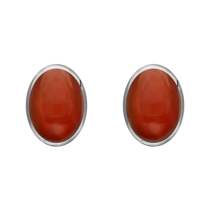 Sterling Silver Carnelian 8 x 6mm Classic Medium Oval Stud Earrings
