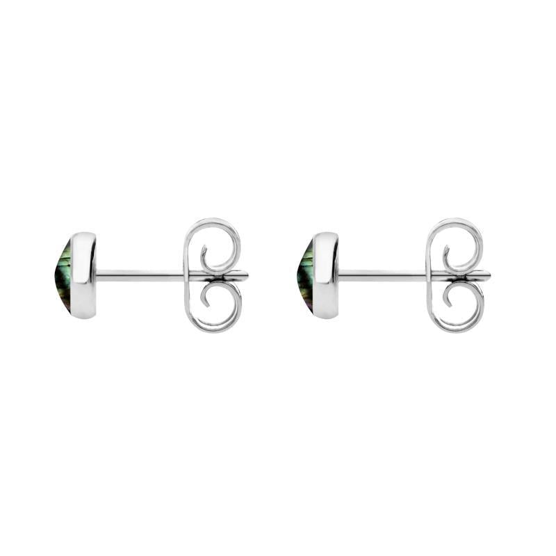 Whitby Jet Store Sterling Silver Spectrolite 5mm Classic Small Round Stud Earrings, E002.