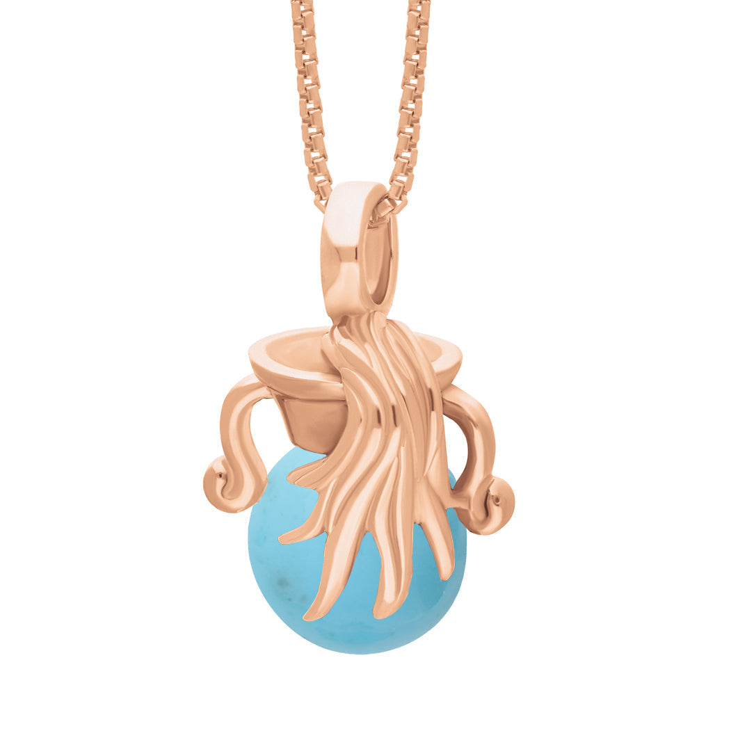9ct Rose Gold Turquoise Zodiac Aquarius 8mm Bead Pendant