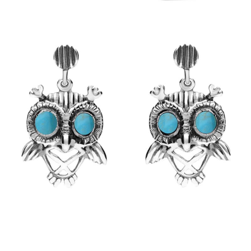 • 9ct White Gold Turquoise Owl Stud Earrings - E2329 (WDF-348)