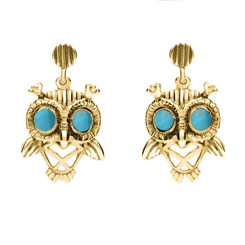 9ct Yellow Gold Turquoise Owl Stud Earrings E2329
