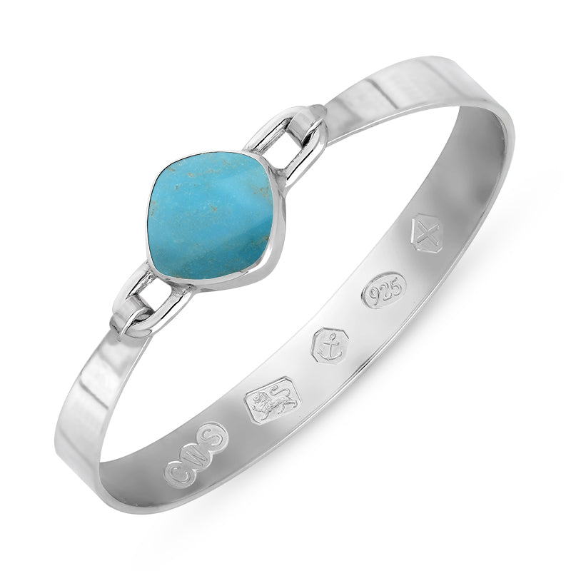 • Sterling Silver Turquoise Hallmark Wide Cushion Bangle - B036_FH (FHM-070)