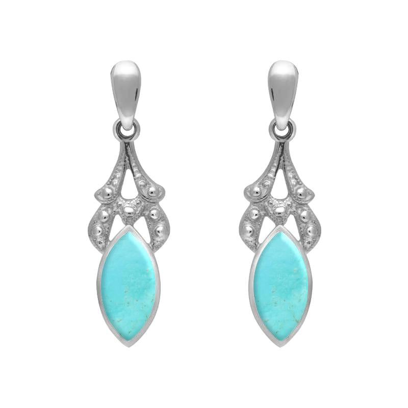 • Sterling Silver Turquoise Marquise Drop Earrings - E075 (HER-1636)