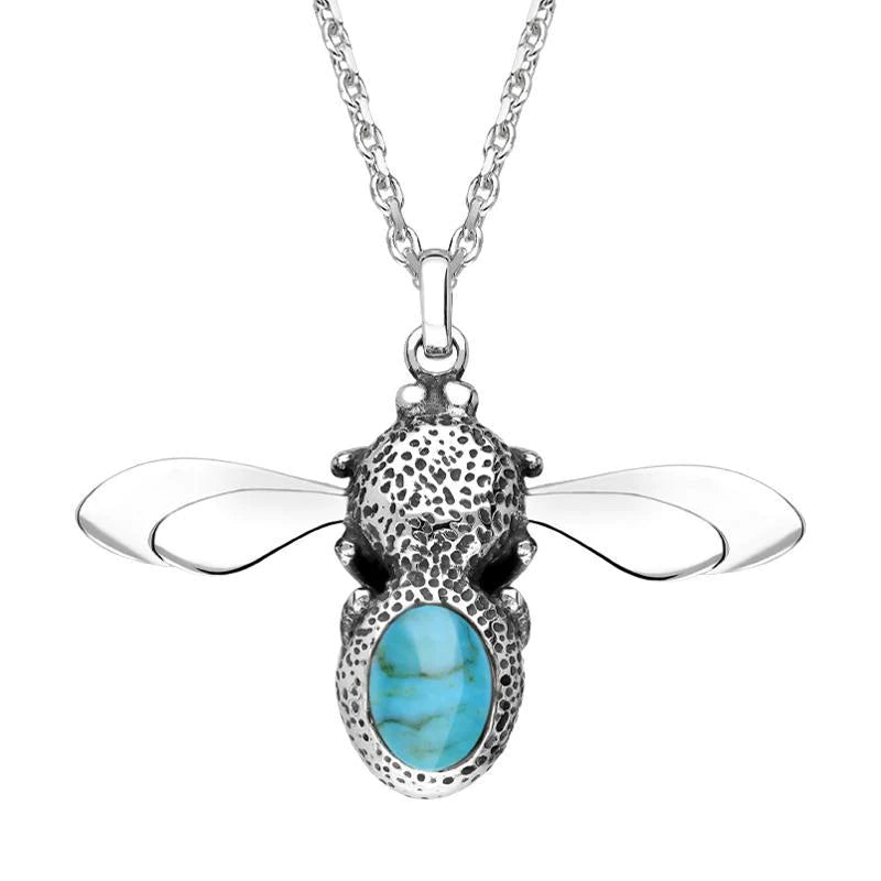 Sterling Silver Turquoise Stone Set Body Bee Necklace