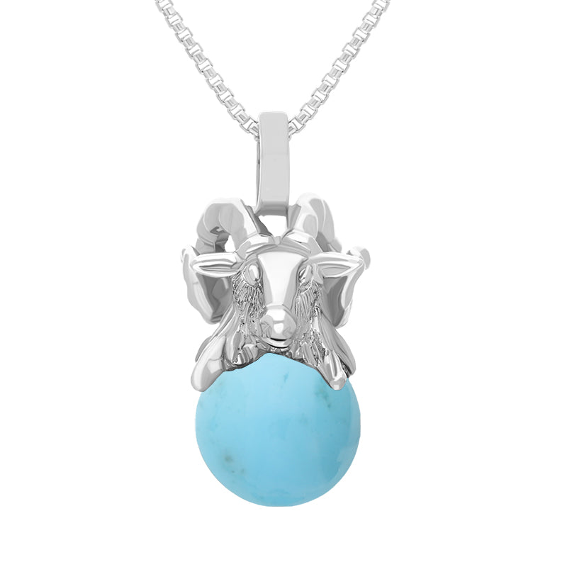 Sterling Silver Turquoise Zodiac Aries 8mm Bead Pendant, P3620.