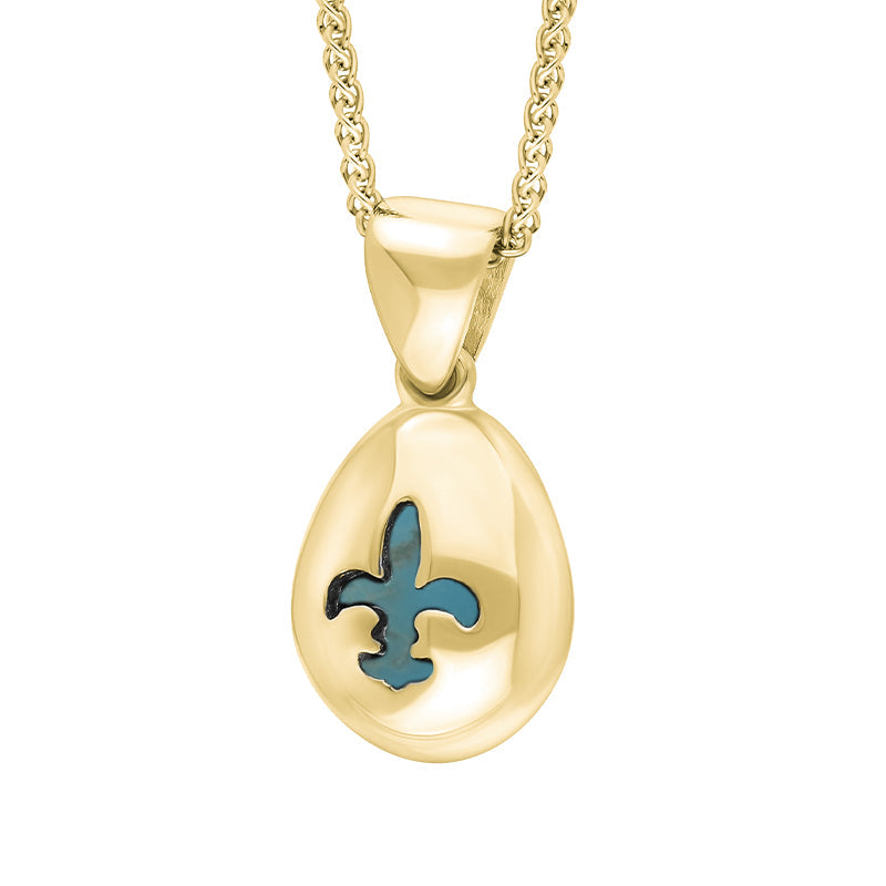 18ct Yellow Gold Turquoise Fleur De Lis Pear Shape Necklace, P3645.