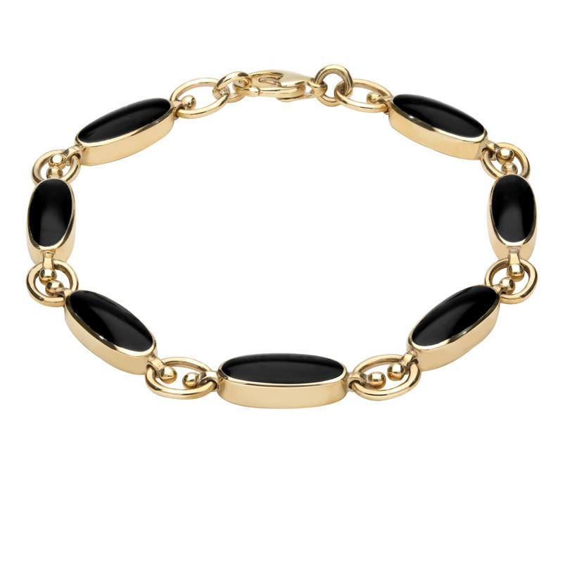 18ct Yellow Gold Whitby Jet Long Oval Bracelet