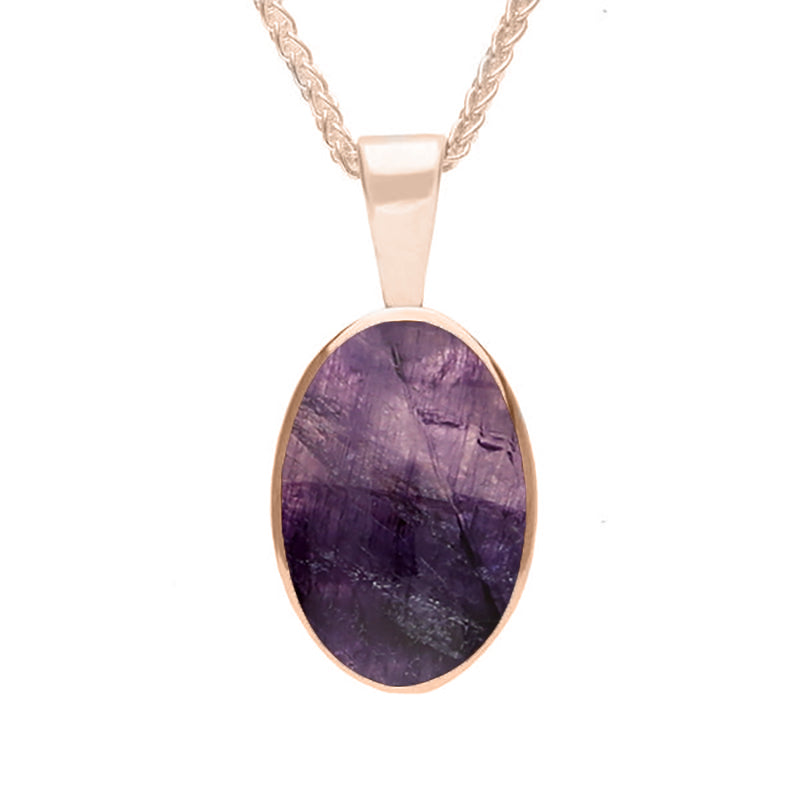 9ct Rose Gold Blue John Oval Necklace. P019.