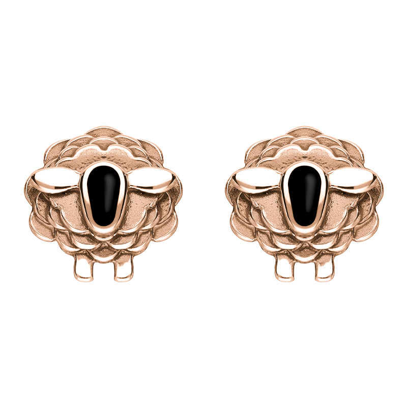9ct Rose Gold Whitby Jet Sheep Stud Earrings, E2530.