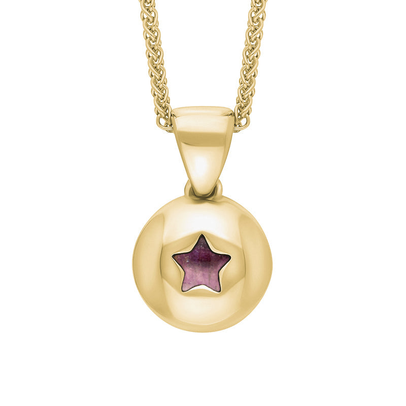 9ct Yellow Gold Blue John Star Disc Necklace, P3644.