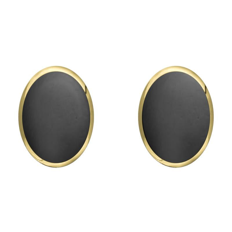 9ct Yellow Gold Hematite 8 x 10mm Classic Large Oval Stud Earrings, E007.