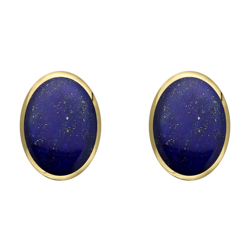 9ct Yellow Gold Lapis Lazuli 8 x 10mm Classic Large Oval Stud Earrings, E007.