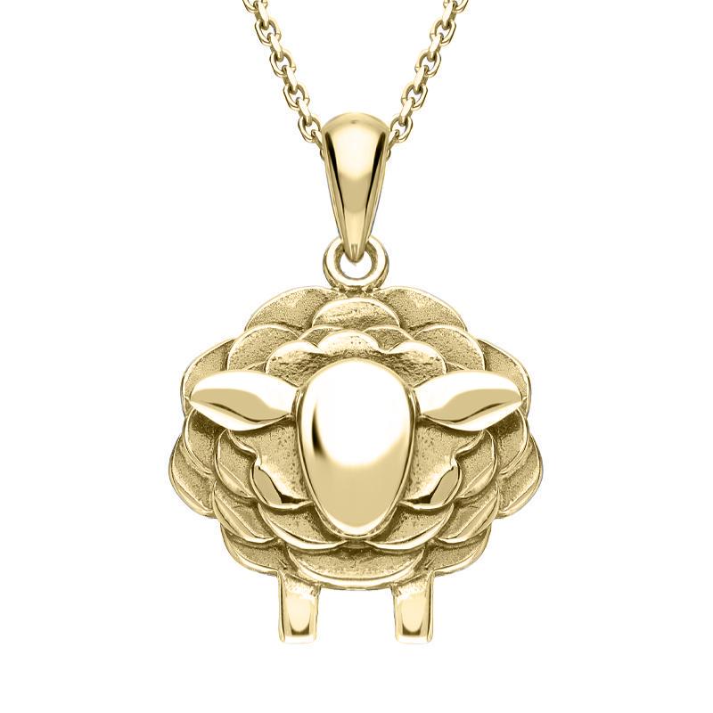 This simple pendant features a beautiful sheep design, handcrafted in 9ct yellow gold. Sold complete with an 18 inch 9ct yellow gold chain which fastens with a classic bolt ring style clasp.