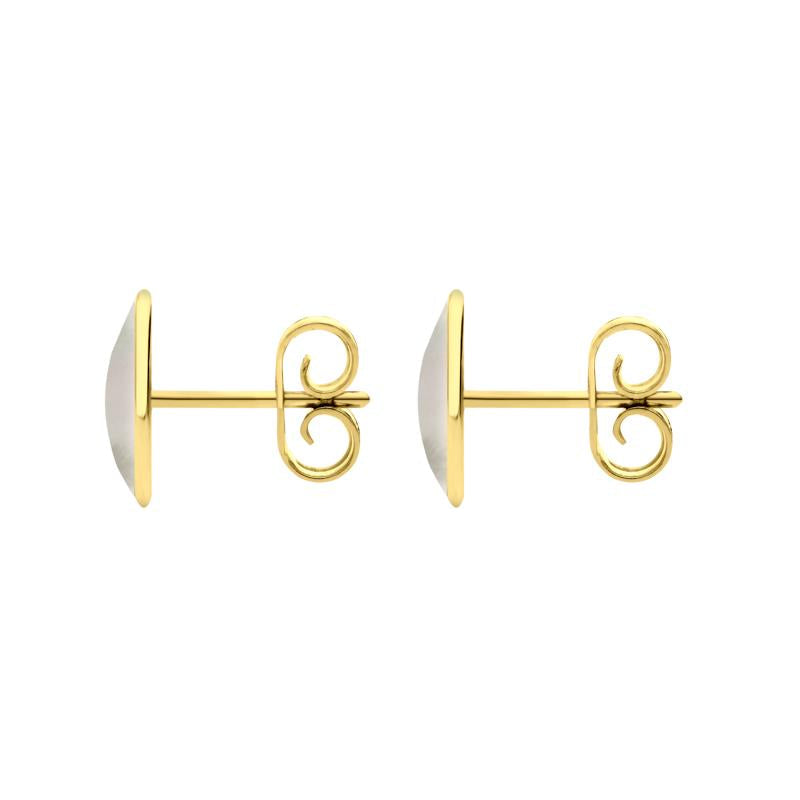 These classic stud earrings feature hand carved White Mother of Pear stone. The highly polished stones are set with 9ct yellow gold post and butterfly fittings. Perfect for any occasion and a staple piece for your jewellery box.