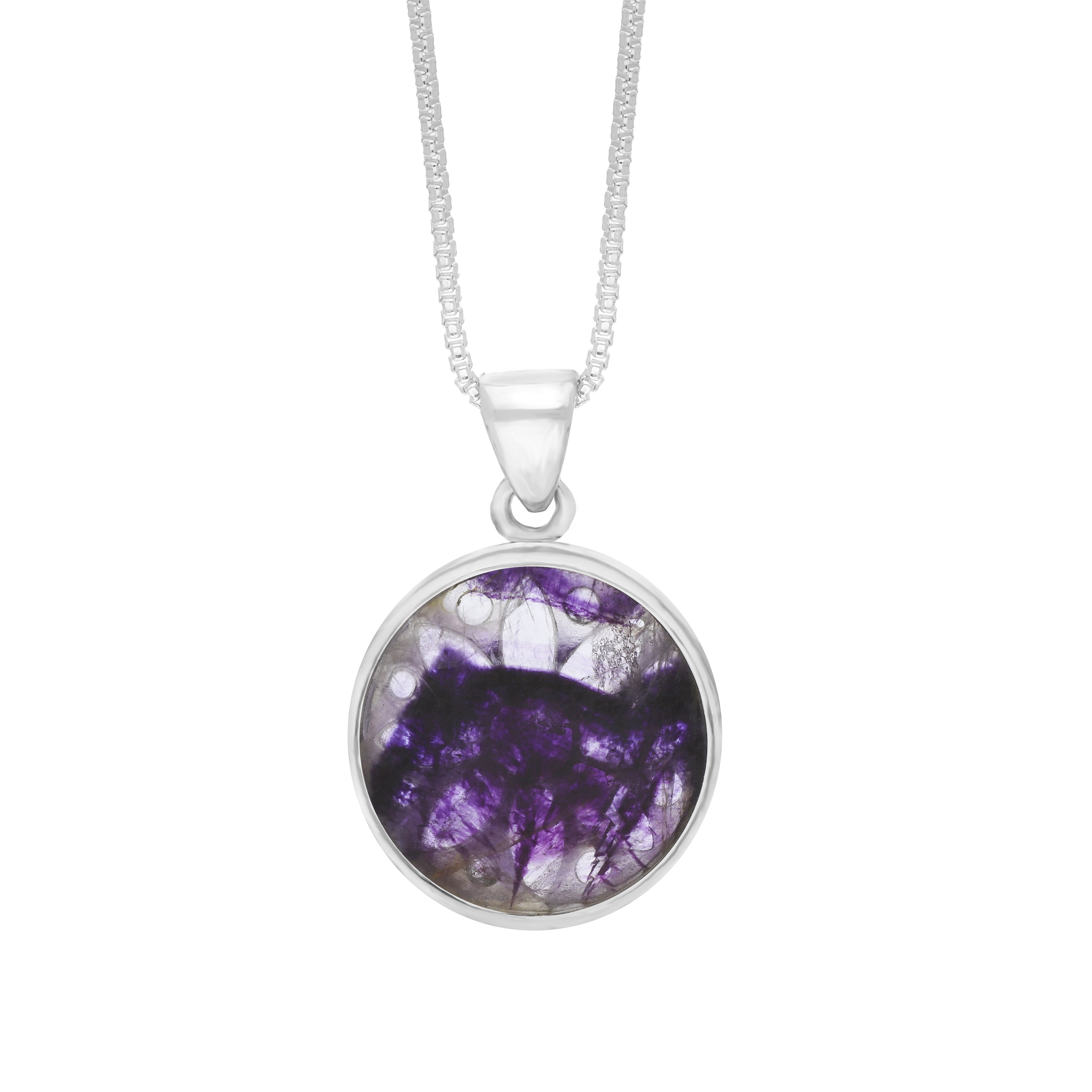 Experience elegance with the 17mm Blue John Sunflower Chatsworth Décor Round Pendant in Sterling Silver.