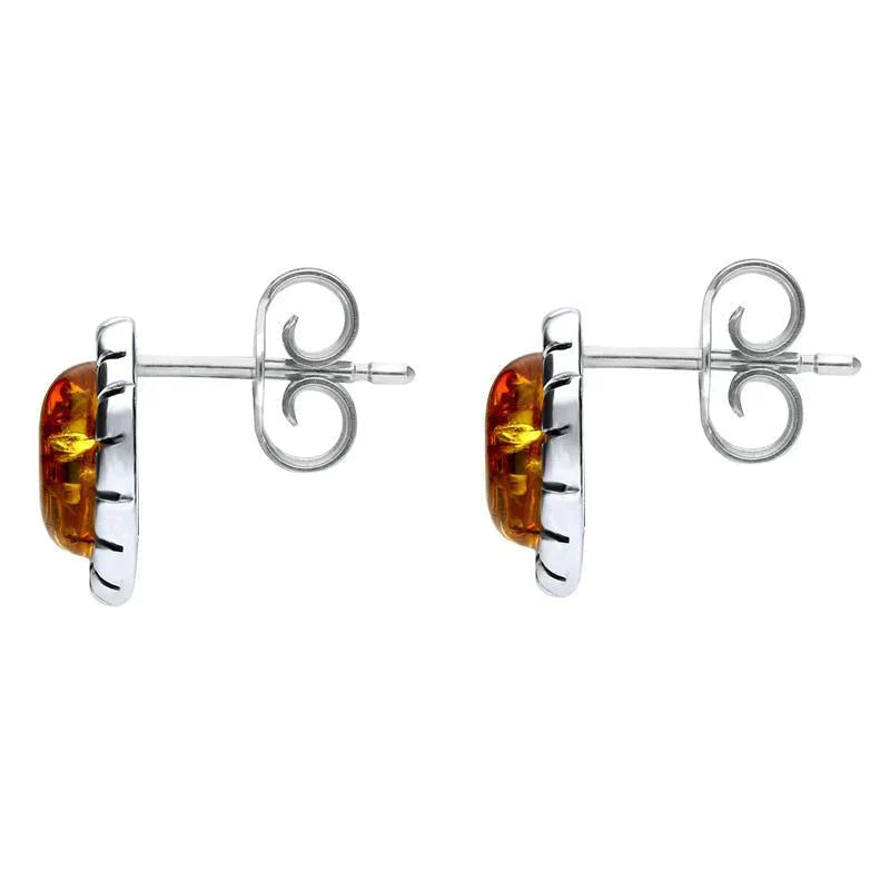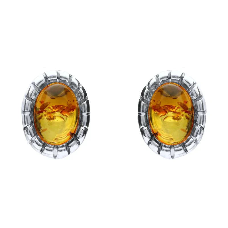 Sterling Silver Baltic Amber Oval Beaded Edge Small Stud Earrings