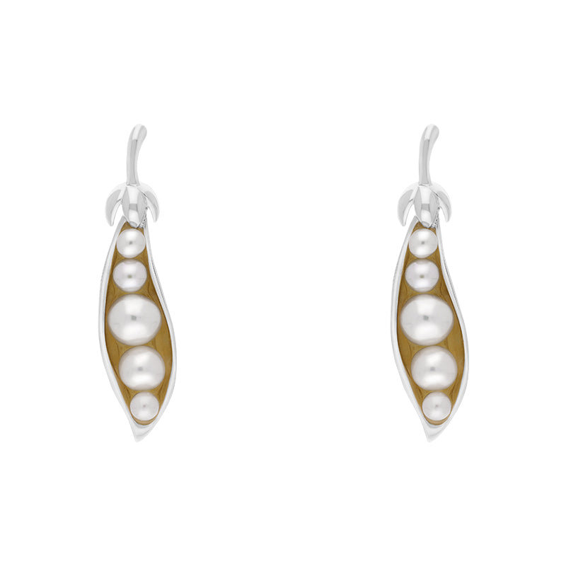 Sterling Silver Freshwater Pearl Chatsworth Garden Peapod Drop Earrings, E2589