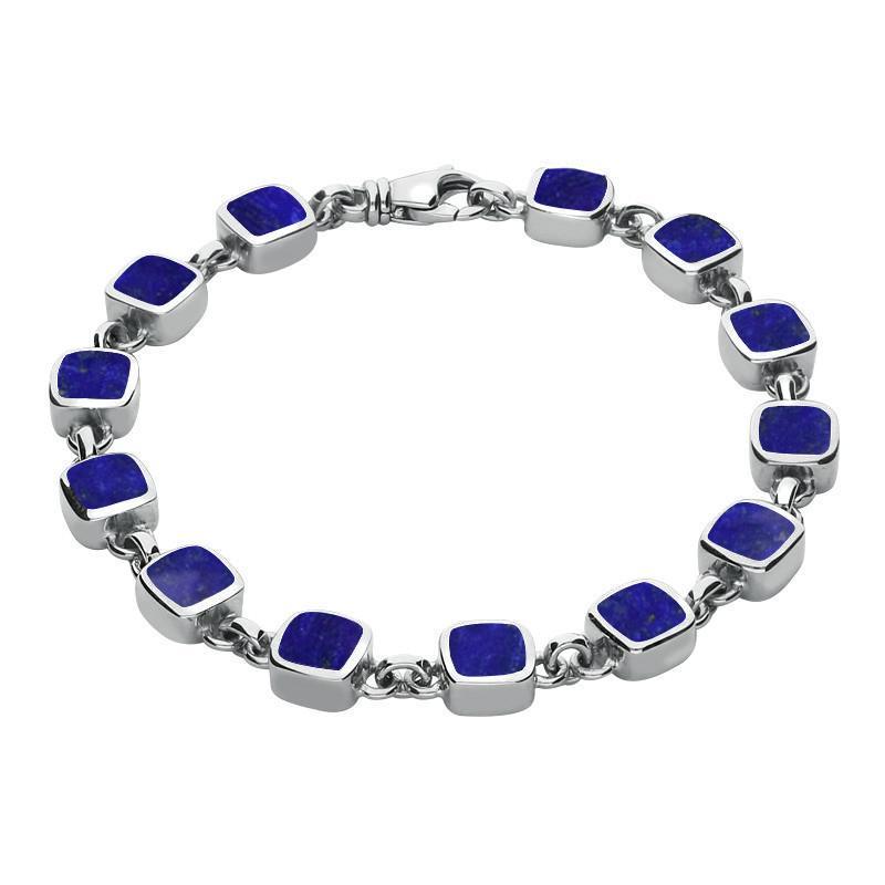 Sterling Silver Lapis Lazuli Square Cushion Bracelet, B538.