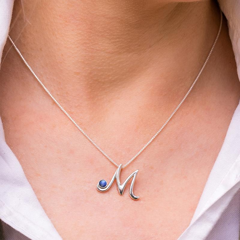 From the new 'Love Letters' collection designed and handcrafted in our very own workshop, this sterling silver necklace features an initial 'T' with a circular Moonstone. The pendant and stone hang elegantly from a 18 inch sterling silver chain.