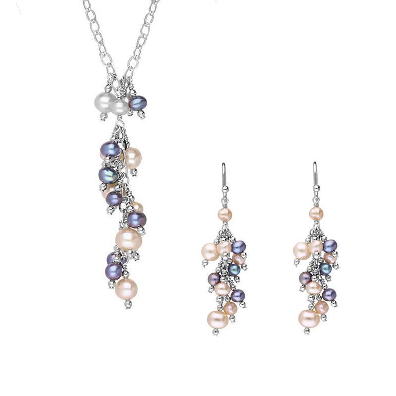Sterling Silver Multicoloured Pearl Bead Drop Piece Set
