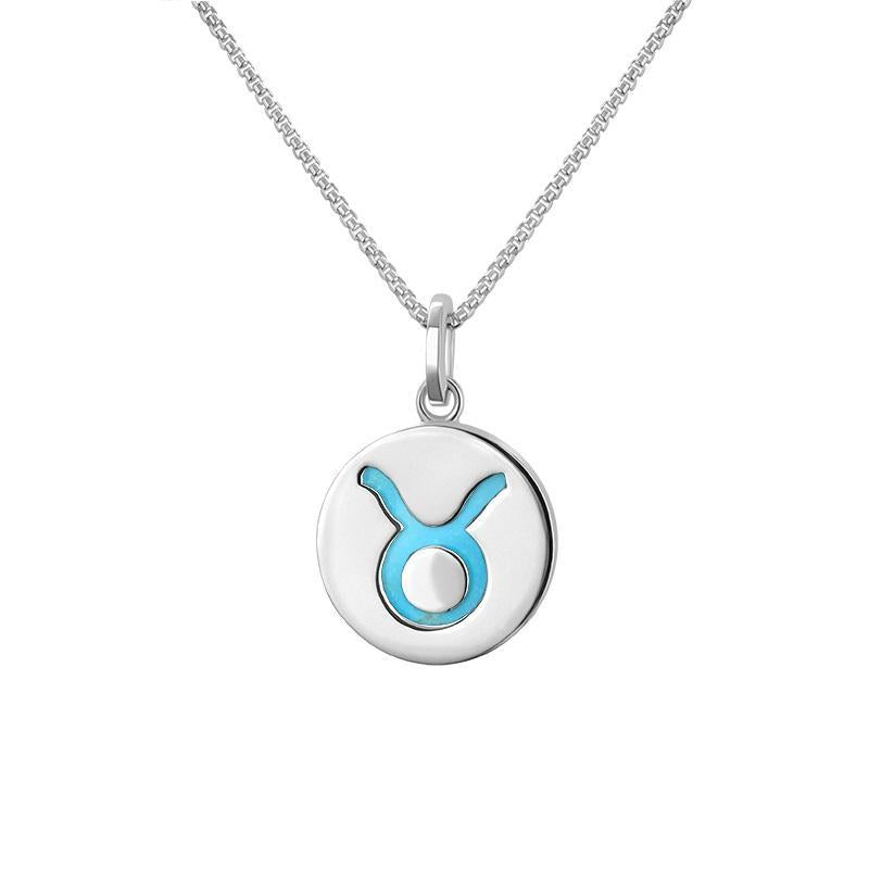 Sterling Silver Turquoise Zodiac Taurus Round Necklace, P3601.
