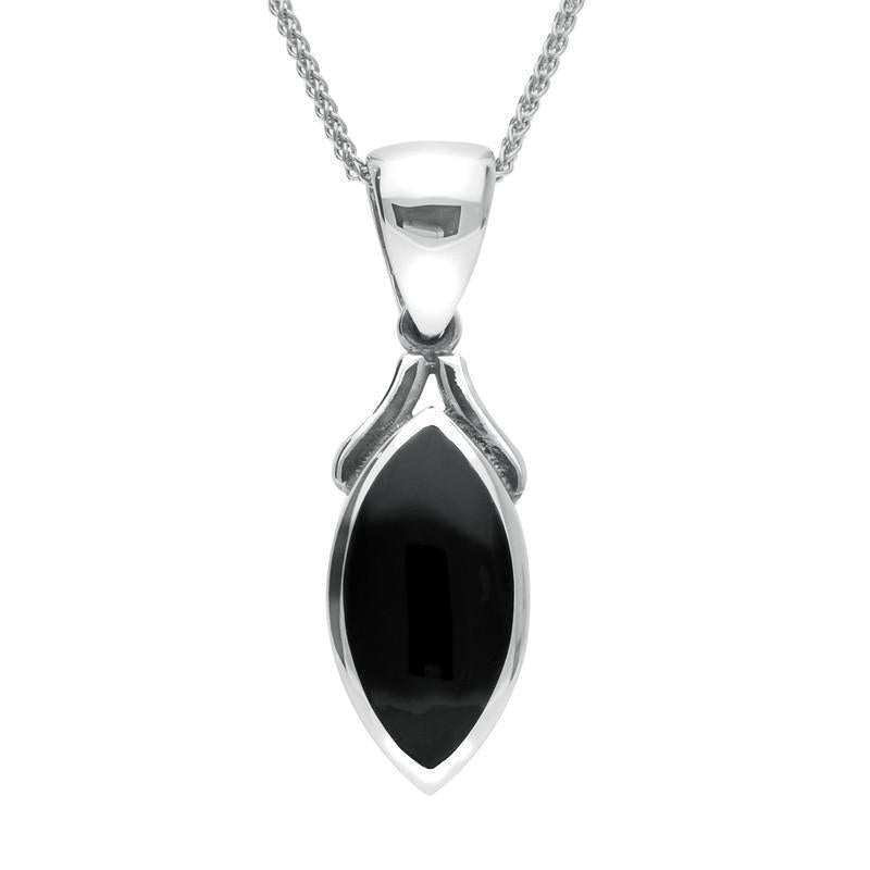 Sterling Silver Whitby Jet Marquise Necklace, P388.
