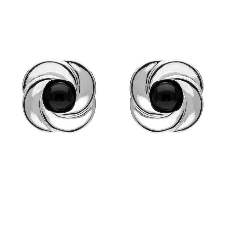 Sterling Silver Whitby Jet Round Swirl Studs Earrings