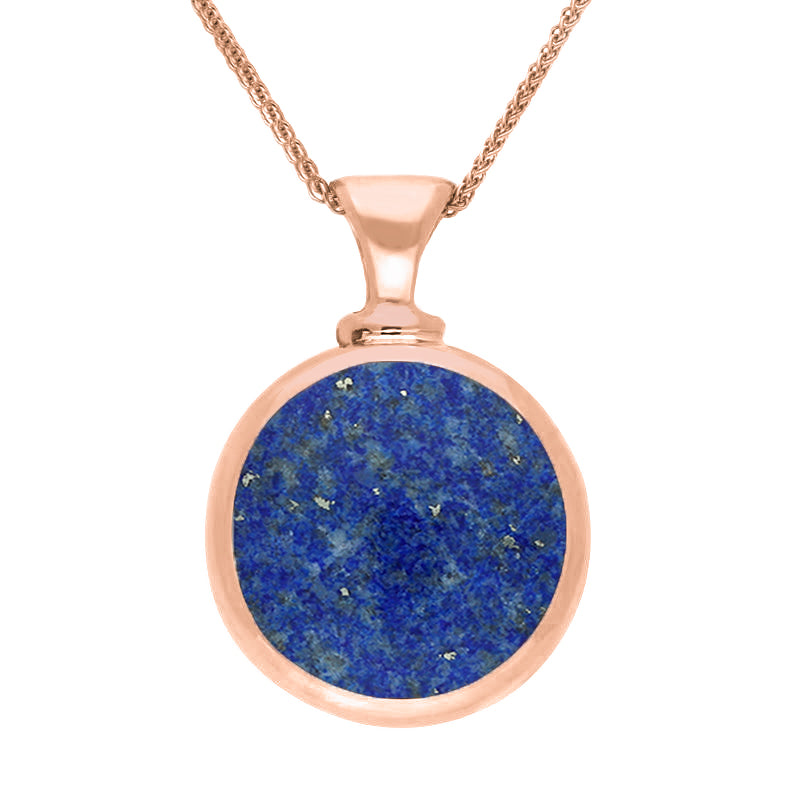18ct Rose Gold Whitby Jet Lapis Lazuli Double Sided Round Dinky Fob Necklace, P218.