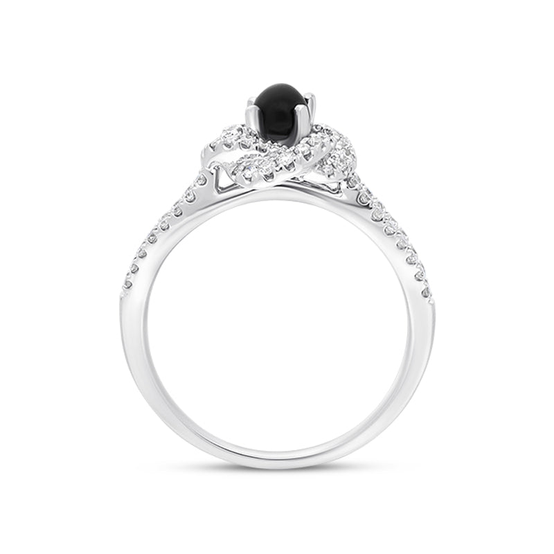 18ct White Yellow Gold Whitby Jet 0.39ct Diamond Knot Ring