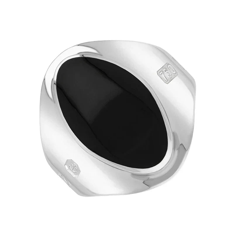 18ct White Gold Whitby Jet Hallmark Small Oval Ring, R076_FH.