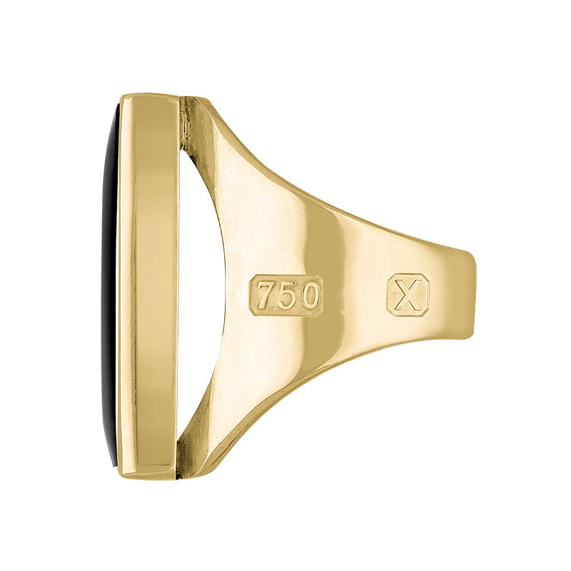 18ct Yellow Gold Whitby Jet Hallmark Medium Square Ring, R604_FH.
