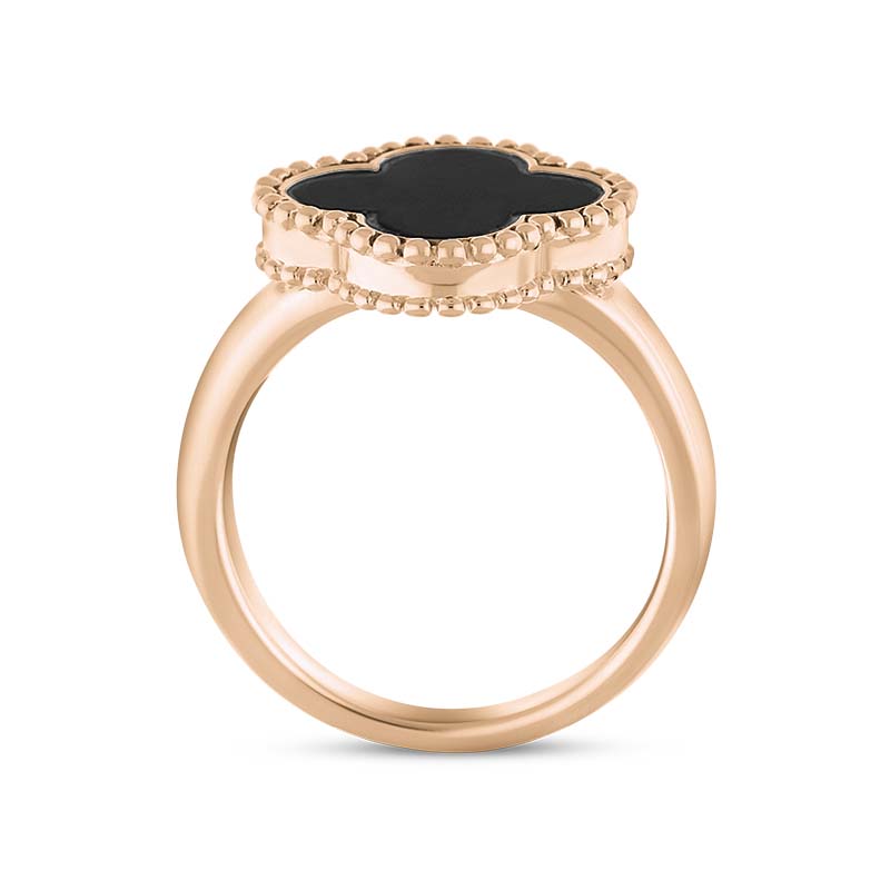 9ct Rose Gold Whitby Jet Bloom Four Leaf Clover Ball Edge Ring, R1264