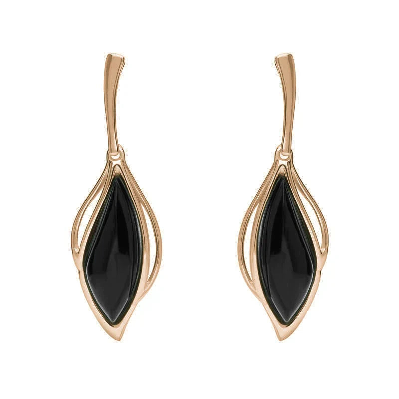 9ct Rose Gold Whitby Jet Open Marquise Drop Earrings, E2437