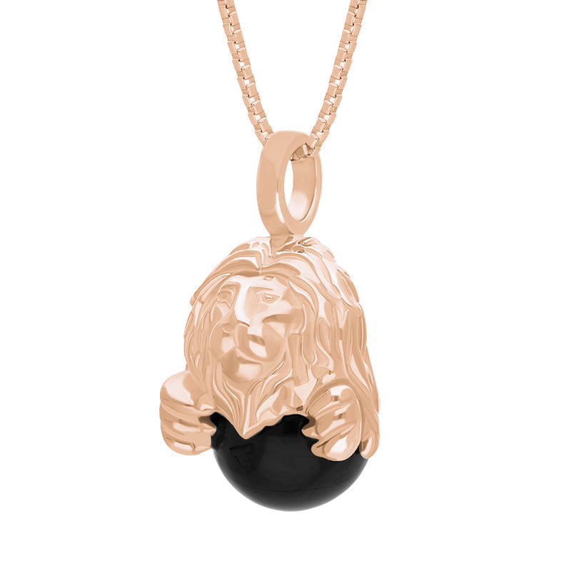9ct Rose Gold Whitby Jet Zodiac Leo 10mm Bead Pendant, P3626.