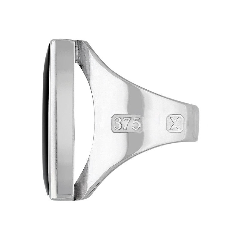 9ct White Gold Whitby Jet Hallmark Medium Oblong Ring