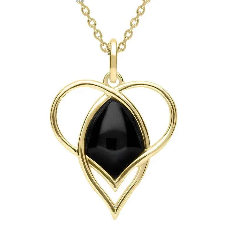 • 9ct Yellow Gold Whitby Jet Open Heart Twist Necklace - P3130 (SGN-071)