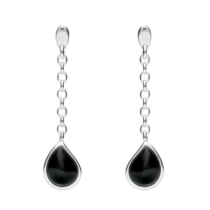 Sterling Silver Whitby Jet Abstract Peardrop Earrings, E1800.