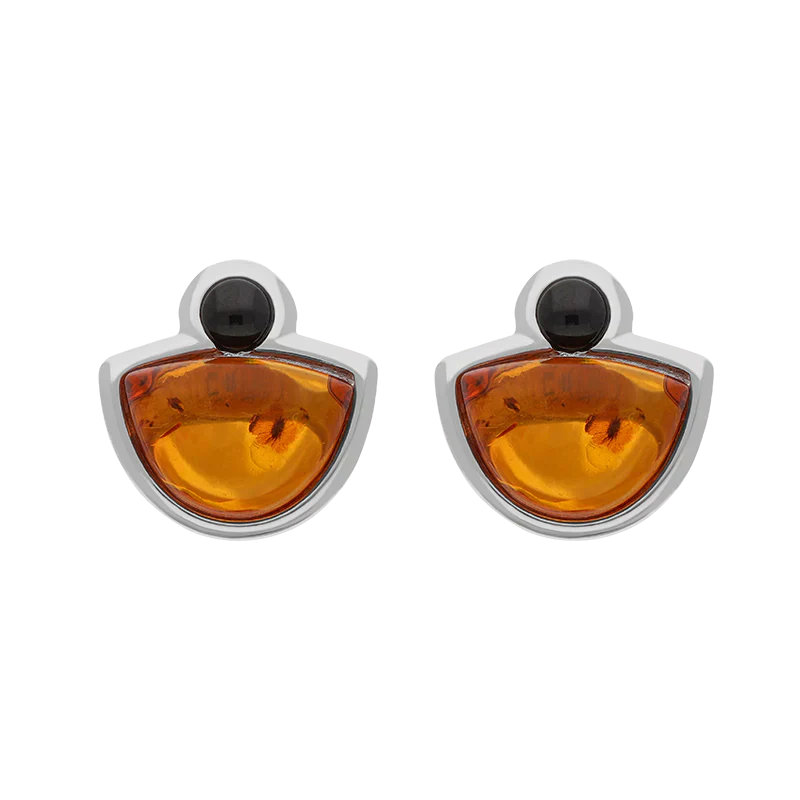 Sterling Silver Whitby Jet Amber Half Moon Round Stud Earrings E2570