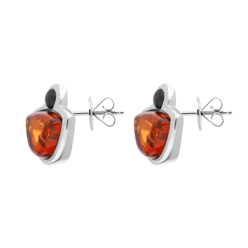 These versatile earrings feature the finest Whitby Jet, sourced directly from the north east coast of Yorkshire, and genuine Amber framed in Sterling Silver. These feminine earrings are perfect for everyday wear and are secured with post and butterfly fitments.