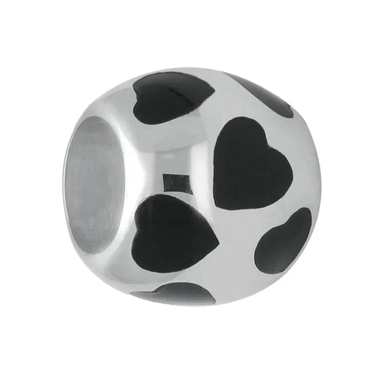 • Sterling Silver Whitby Jet Barrel Hearts Charm - G500 (SGN-701)